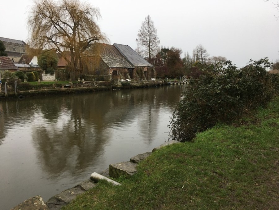 However, there is nothing conjectural about the fortifications themselves. Wareham is one of the few places where even today you can actually see and walk around the impressive earthworks which formed the backbone of the defences. It’s not clear whether these were constructed specifically as part of the burh or were based on previously established fortifications which were simply extended and improved by the Saxons but, either way, when ‘topped off’ by a tall stockade, they would have presented a formidable defensive barrier. This ran along three sides of the settlement, the fourth – the southern boundary – being formed by the river Frome which it seems was considered deterrent enough and was, in any event, an important waterway for trade on which the settlement depended so needed to be kept ‘open’. There is also a river to the northern boundary, the River Piddle, but this was presumably not considered to offer sufficient protection in itself.